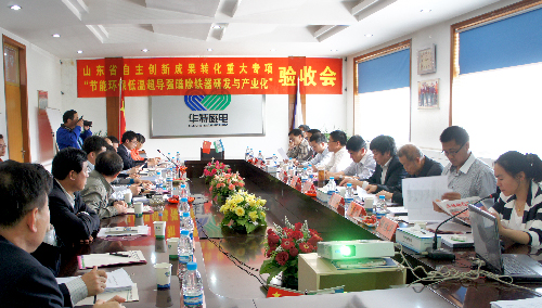 4月26日,省科技厅在公司现场主持召开了由公司承担的省自主创新成果转化重大专项 “节能环保低温超导强磁除铁器研发与产业化”项目验收会。与会专家听取了项目的有关报告,考察了生产现场,经质询和讨论,一致同意通过验收。