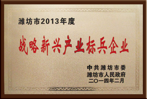 公司被潍坊市委市政府授予“战略新兴产业标兵企业”